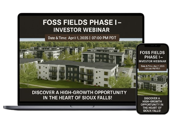 Located in Sioux Falls, South Dakota, this 100-unit development phase (for a projected total of 500 units) will be built within the 300-acre Foss Fields master development dedicated to WWII fighter pilot and local hero Joe Foss, who grew up in a farmhouse on this same land. The project is engineered to work within a high interest rate environment, building and leasing faster than nearly any other comparable apartment development, and delivering risk-adjusted passive returns and superior tax benefits for investors.